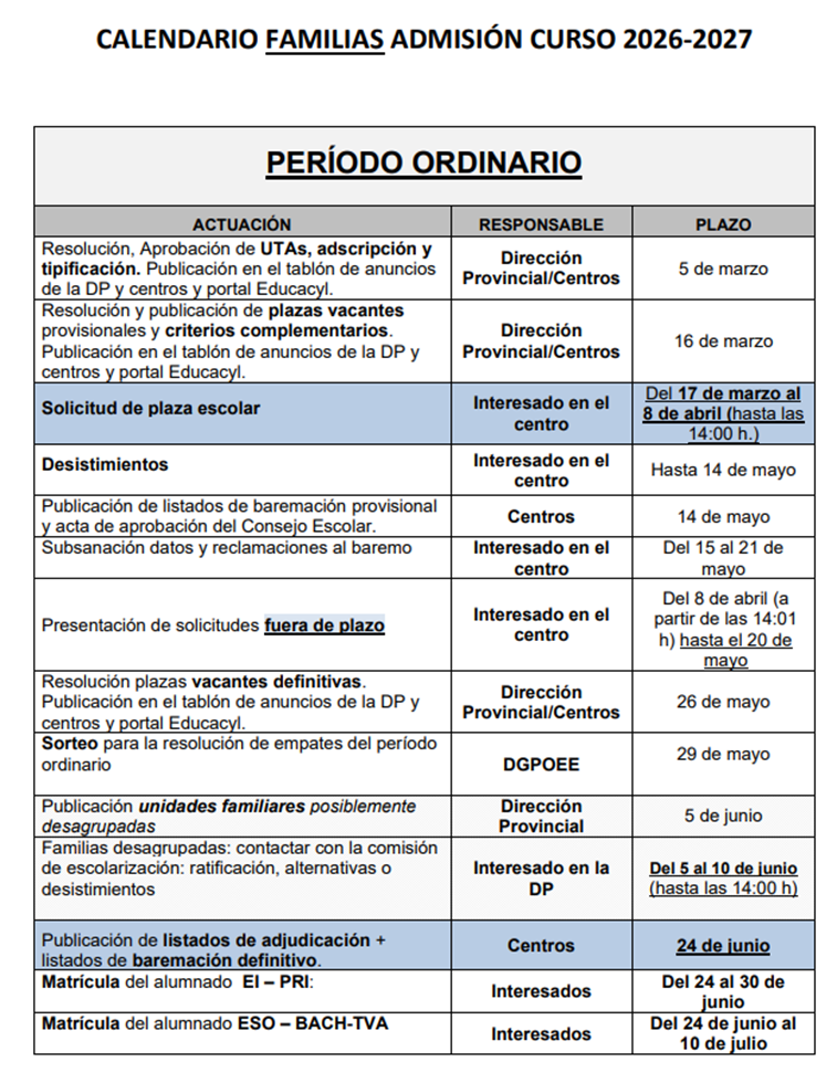 El proceso de admisión es un procedimiento por el cual los alumnos, o en su caso, los padres o madres, solicitan plaza en el Instituto para cursar unos estudios determinados durante el próximo año académico. Participación en el proceso de admisión 2026 / 2027 LEE CUIDADOSAMENTE LAS INSTRUCCIONES Y LA SOLICITUD
